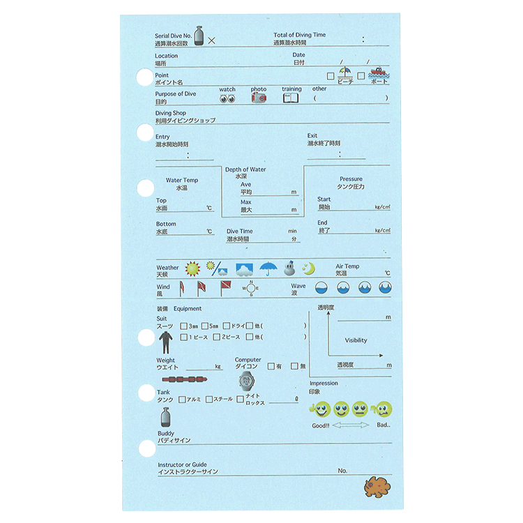 12種類のかわいいお魚のイラストがついて、カラフルで使いやすいログブックレフィル。