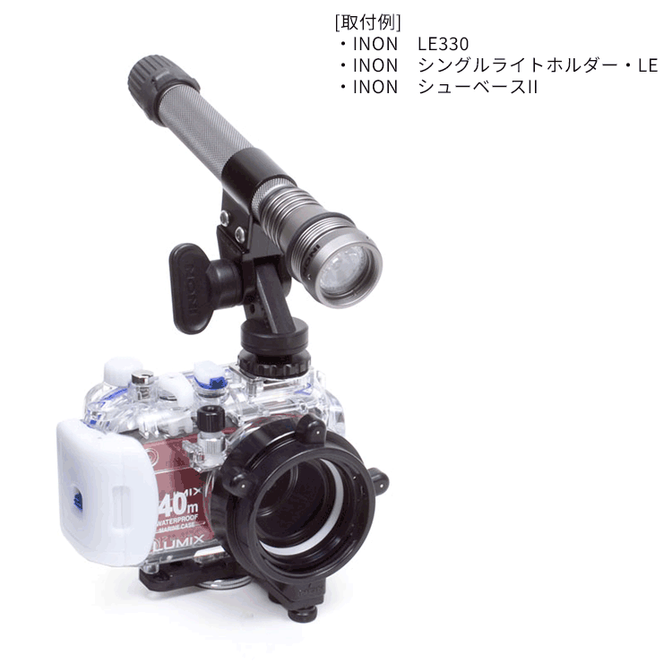 イノンLEシリーズLEDライト1灯を、『「YSアダプター」互換アーム』へ取り付け可能とするオプションです。特に、「シューベース」や「グリップベースD4」と組み合わせる事で、コンパクトかつ手軽にカメラシステムへの取り付けが可能となります。