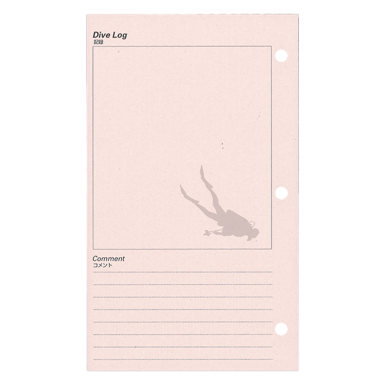 表面にダイビングデータ、裏面にコメント欄、リフィル1枚で1DIVE分のデータが書き込めます。
