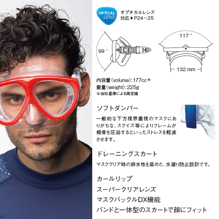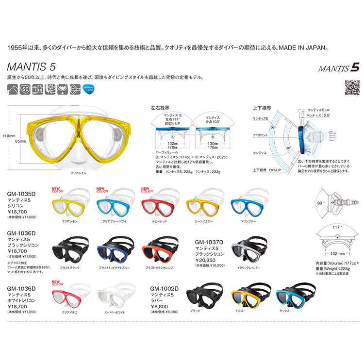 国内メーカー故の品質の高さ、「日本人の顔にジャストフィットするマスク」としてロングセラーを誇る「マンティス」マスクを容量を小さく、軽量にしつつも視界を広く開発されたモデル!