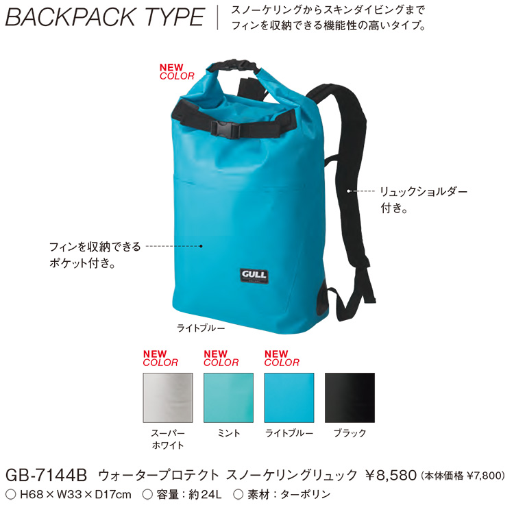 mic21で[ GULL ] GB-7144B ウォータープロテクト スノーケリングリュック GB7144B WATER PROTECT BAG バックパックタイプ 約24L を買うならec.mic21.com