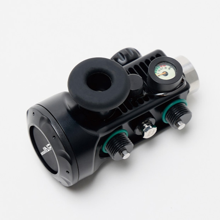 →small AIRはレギュレーターとボンベが1体になっているため、KG Airだけで海の中で呼吸ができます。ボンベ1本あたり15L、合計30Lの空気が注入可能です。