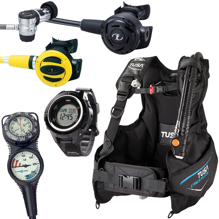 人気の国内ダイビングメーカーTUSA(ツサ)のダイブコンピュータも付いた重器材5点セット!価格を抑えつつも、機能は十分なコストパフォーマンスに優れたセットです!