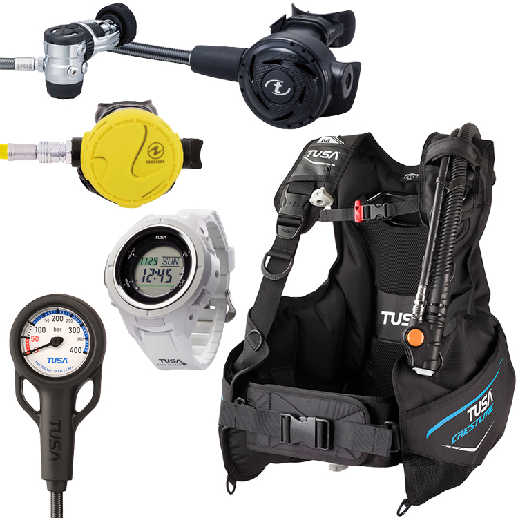 人気の国内ダイビングメーカーTUSA(ツサ)のダイブコンピュータも付いた重器材5点セット!価格を抑えつつも、機能は十分なコストパフォーマンスに優れたセットです!