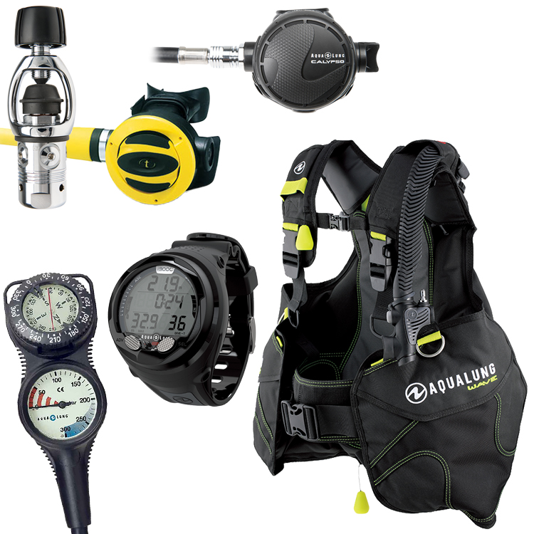 [ AQUALUNG ] ウェーブ + カリプソ ダイブコンピュータ付き重器材5点セット