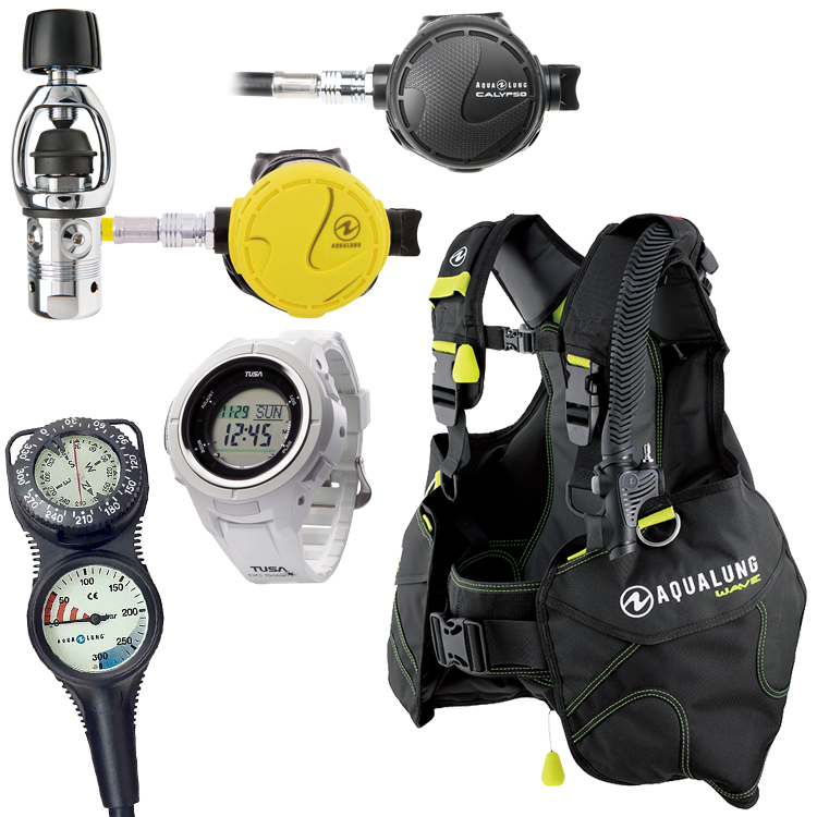 [ AQUALUNG ] ウェーブ + カリプソ ダイブコンピュータ付き重器材5点セット