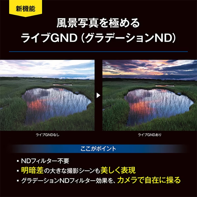 高画質Live MOS センサーと、TruePic Xを使った最新の画像処理技術が、暗部から明部まで諧調豊かに表現します。