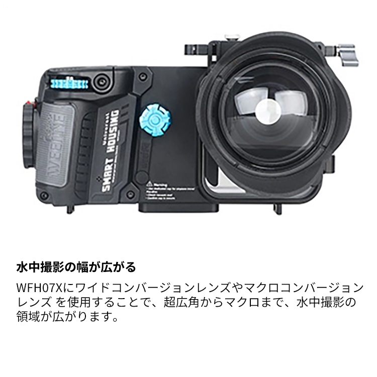 WFH07Xにワイドコンバージョンレンズやマクロコンバージョンレンズ を使用することで、超広角からマクロまで、水中撮影の領域が広がります。