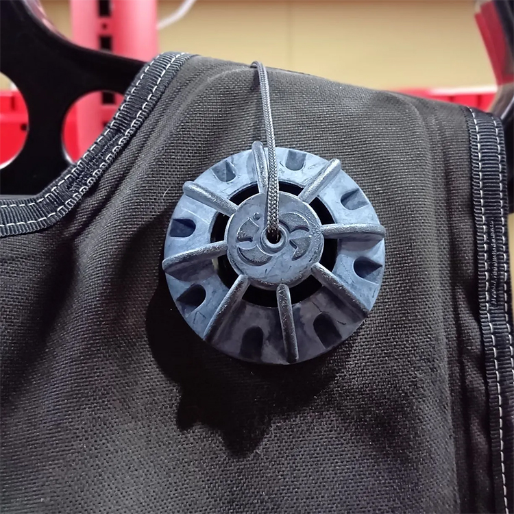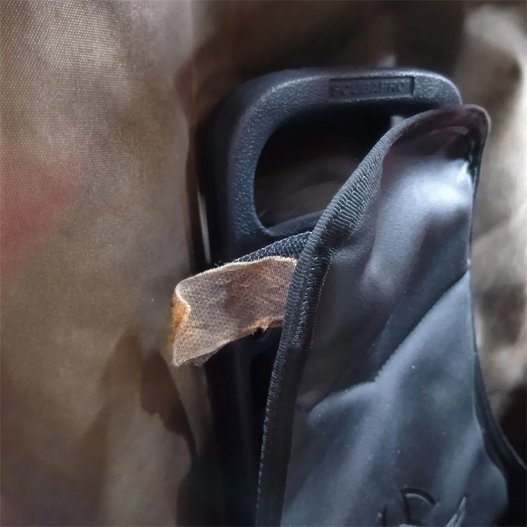 Dリングに赤いウェイトベルトの切れ端有。