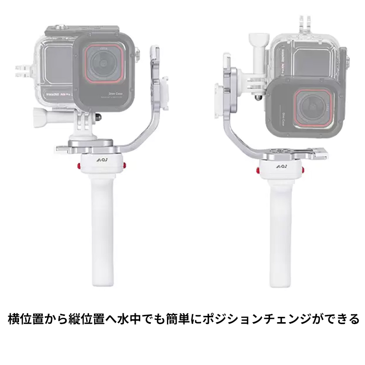 横向き/縦向きをすばやく切り替えられるアクションカムハウジング用のユニバーサルハンドグリップです。一体型のクイックリリースファスナーによって、素早くハウジングを外し・位置調整して再装着が可能。横位置の撮影から、リールやストーリーズ用の縦位置に切り替える場合でも、HT-03があれば楽々とこなせます。