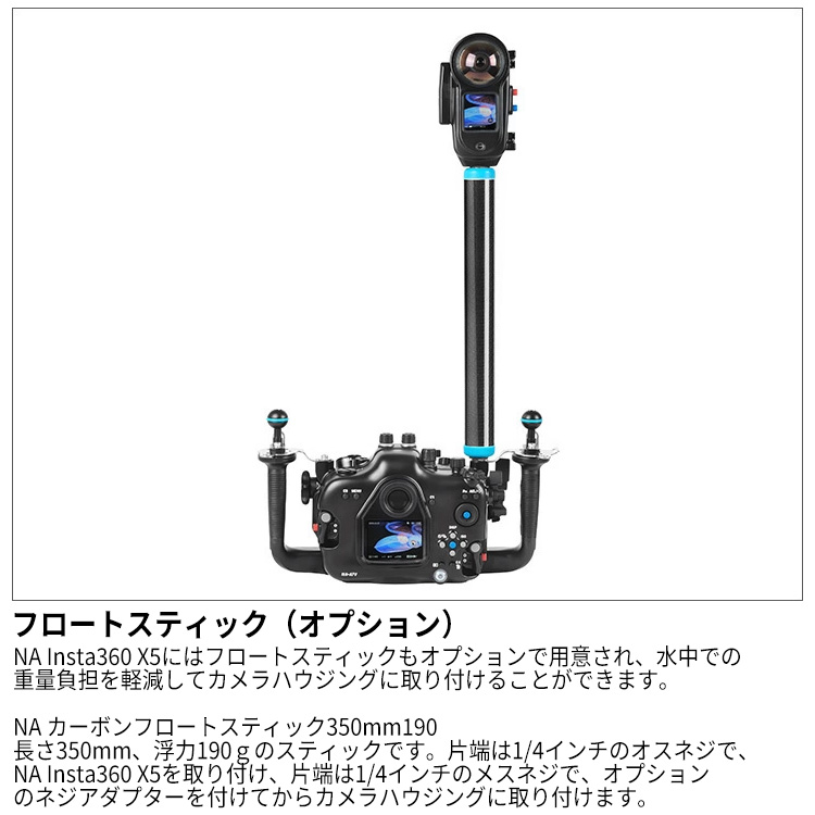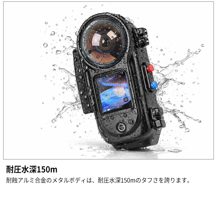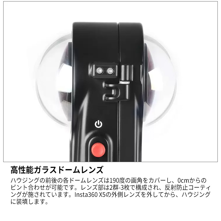 360度動画からフラット動画まで、 8K/30fpsの高画質撮影が可能な「Insta360 X5」対応ハウジング。[仕様]
