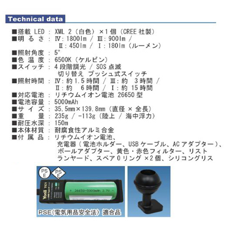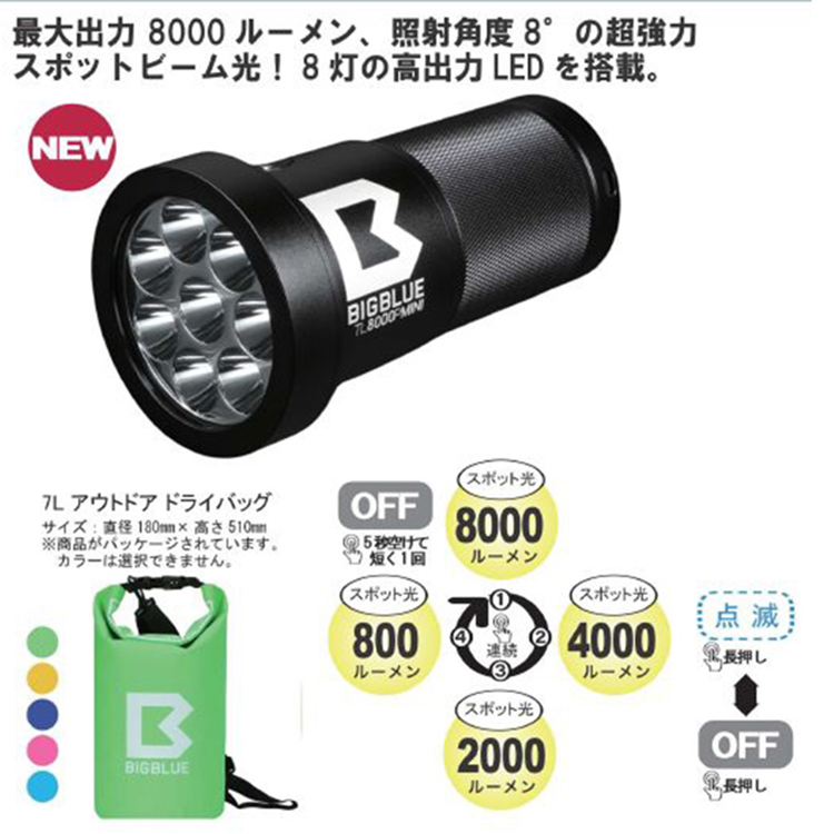[ bigblue ] ビッグブルー TL-8000P MINI 水中LEDライト スポットライト 8000ルーメンの明るさ リチウム電池